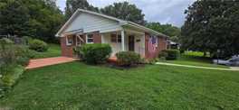 Beautifully maintained one level brick ranch has a great floorplan and terrific lot. A charming covered front porch instantly welcomes you and guests into the home. Gorgeous hardwood have been refinished and are move-in ready! Spacious living room has built-ins, glass storm door and lovely windows that flood the room with light. Kitchen has eat-in dining area that walks out to the patio. Primary bedroom has been freshly painted, features two closets and a half bathroom. Hall bathroom has full linen closet and ample counterspace. Newer windows. Unfinished basement area is full of potential! 1 car garage. Located conveniently to hospitals, shopping and downtown Winston Salem.