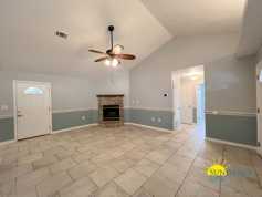 Located in South Crestview, this charming 3-bedroom, 2-bathroom home is just 40 minutes from the stunning beaches of the Emerald Coast and conveniently close to all area military bases. This must-see home features a 2-car garage and driveway parking. Step inside to a spacious living room with vaulted ceilings, tile flooring throughout, and a cozy gas fireplace. The split-bedroom floor plan offers added privacy for each room, making it ideal for families or roommates. The kitchen is a true chef’s delight, complete with modern appliances, granite countertops, and ample cabinet space. The roomy primary suite is a dream, featuring a luxurious jacuzzi tub—perfect for relaxing after a long day. Two additional good sized bedrooms and another full bathroom complete the interior. For added convenience, washer and dryer hookups are located in the garage.