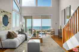 Spectacular Fully Renovated Oceanfront South-Corner Penthouse with panoramic views from Catalina to Malibu. This incredible space features two-story vaulted ceilings, hardwood floors and designer finishes throughout. Expansive living and dining areas open to a massive double balcony, creating seamless indoor-outdoor flow. The gourmet kitchen boasts custom cabinetry, stone countertops, and stainless appliances. Three spacious bedrooms + loft office provide flexibility. Oceanfront Primary suite offering a huge walk-in closet and spa like bath with a separate tub and shower. Tremendous outdoor space includes a 617 sq ft rooftop deck and a tremendous oceanfront balcony off the living and primary bedroom. Flooded with natural light this rare penthouse captures the best of Marina Peninsula living. 3 car garage parking included + elevator building.