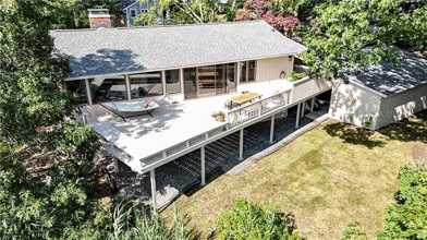This spacious home offers breathtaking views of a tidal pond, salt marsh, and Narragansett Bay. The open-concept upper level features an eat-in kitchen, sitting area with wet bar, dining space with panoramic water views, and a living area with a brick fireplace. Sliding doors open to an expansive deck with a cooking area, perfect for entertaining or relaxing.