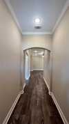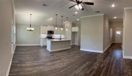 This beautifully crafted home by Scott Ellis Homes features three bedrooms, two full bathrooms, and a spacious two-car garage. The open-concept floor plan boasts soaring 10-foot ceilings, upgraded wood-look vinyl flooring in the main living areas, and plush carpet in all bedrooms. The gourmet kitchen is equipped with granite countertops, a large center island, white cabinetry, under-cabinet lighting, and modern finishes—perfect for both everyday living and entertaining. The luxurious primary suite includes dual vanities, a separate shower and soaking tub, and a frameless glass shower enclosure. Additional highlights include crown molding, ceiling fans in every room, window blinds, a covered back patio, stained wood fencing, a full sprinkler system, professional landscaping, and gutters. The home also comes with a state-of-the-art ADT security system, front door camera, and keyless electronic entry.