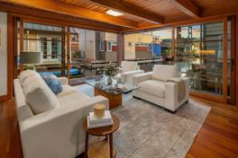 - Exposed beam ceilings and thoughtful wood detailing throughout