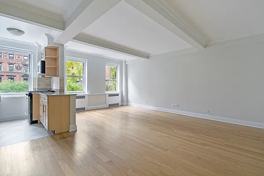 Large studio apartment with natural light, separate windowed kitchen, hardwood floors, and ample closet space. Manhattan specialist.