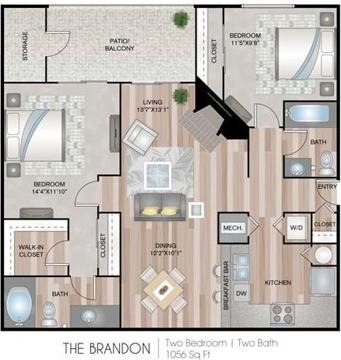 Lease Term: 12 Month. This incredible two bedroom, two bath layout is perfect for roommates. It includes updated amenities like stainless steel appliances, a washer and dryer, granite or bamboo countertops and wood floors.
