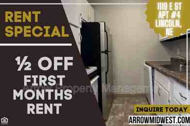 1119 E St #04, Lincoln, NE is a 1 bedroom, 1 bathroom apartment for rent. It is located in the Everett neighborhood of Lincoln. It has apartment amenities including on-site laundry, dishwasher, and air conditioning. Cats and dogs are allowed, making it a pet-friendly apartment.
