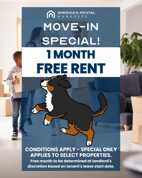 Sign a 13 month lease by 12/31/2025 to receive ONE FREE MONTH prorated over 10 months for a DISCOUNTED RENTAL RATE of $1,436/Month for the first 10 months (Market Rental Rate = $1,595/Month)