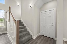 The primary suite on the main level includes a large walk-in closet and a beautifully appointed bathroom, while the secondary bedrooms upstairs offer comfort and ample storage. Enjoy the convenience of an attached garage, energy-efficient construction, and low-maintenance living.