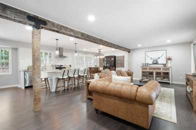 This impeccably renovated traditional home in the heart of East Cobb offers 4 bedrooms, flex room and 3 full baths. On just over half an acre this standout property perfectly blends comfort, style and outdoor living. Open concept floorplan features beautiful barnwood beams, seamless flow into the gourmet kitchen with oversized island, quartz countertops, white shaker cabinets, stainless gas range, breakfast bar, pantry and dining area overlooking the yard. The renovated baths include a primary ensuite, main bath with double vanity and modern finishes. The spacious primary bedroom also features a walk in closet with custom shelving. Three additional bedrooms and a bath are located on the upper floor. The flexible lower level bedroom w/full bath access is perfect for guests, cozy den or home office. The inground salt water pool with updated liner, expansive deck and a low maintenance yard is tailor made for summer gatherings. This amazing property is close to shopping, dining, park and the vibrant Marietta Square.