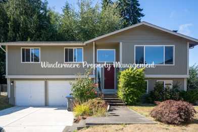 Welcome to this stunning 4-bedroom, 2.5-bathroom home close to golf course, schools and shopping. This property boasts a range of modern amenities including a washer/dryer, a spacious 2-car garage, and a sunny back deck perfect for enjoying the outdoors. The interior has been freshly painted, adding a touch of elegance to the home. The kitchen is a chef's dream, equipped with stainless steel appliances and beautiful granite countertops. The bonus "den" space downstairs offers additional room for various activities. The home's convenient location makes commuting a breeze. The long driveway provides ample parking space, while the large fully fenced yard ensures privacy and security. This home is a perfect blend of comfort and luxury. Home is split level with the upper level featuring open floor plan to include living room, kitchen and dining area, fireplace and 3 bedrooms including primary room with ensuite 3/4 bathroom. Lower level features bonus flex space, fireplace and additional bedroom or office. Pets negotiable with additional deposit and owner approval. This one won't last long - contact us today! Tenants must pay all utilities, carry insurance, apply at www windermereforrent com and are responsible for yard care.