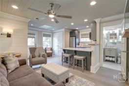FURNISHED, WATERFRONT luxury carriage house. Covered dock on Wilmington River. Shiplap walls and a custom bath, gray cabinets, stainless steel refrigerator, cooktop, convection oven, microwave, stone countertops with seating for 4. Large workspace/storage. Separate bedroom w/queen bed, wall mount lamps, a ceiling fan, and 2 closets, built-in bedside tables. Attached the deckk gas grill. Washer/dryer and all utilities included. No pets or smokers. Owner is licensed GA realtor.