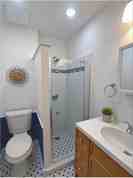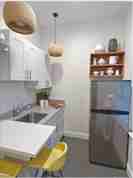 The modern kitchen is complete with stainless steel appliances and ample cabinet storage, making it easy to prepare meals at home. A generous closet offers excellent storage solutions, ensuring everything has its place.