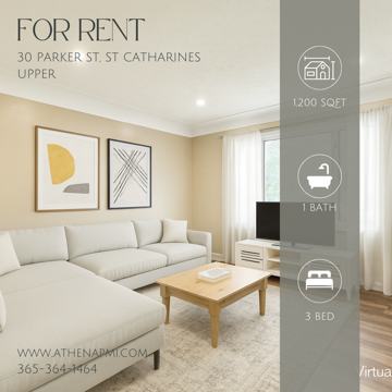This spacious 3-bedroom, 1-bathroom main floor apartment offers approximately 1,200 sq ft of comfortable living space. Located in a quiet residential area, this unit is perfect for those seeking privacy, space, and convenience in a central St. Catharines location.
