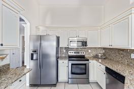 The primary suite includes a walk-in closet and a private bath with dual sinks. Three additional bedrooms offer flexibility for guests, home office, or hobbies. The backyard provides a low-maintenance outdoor space with a covered patio, ideal for relaxing evenings or weekend BBQs.