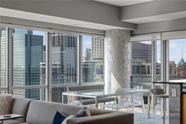 Spectacular FURNISHED 3BR penthouse now available with stunning downtown skyline views. You’ll love the walls of windows with roller shades, balcony with natural gas grill, hardwood floors, plenty of closet space with built-in organizers, and modern functional furnishings. Kitchen features tons of countertop and cabinetry space, large breakfast bar, gas cook-top, and top line stainless steel appliances. Owner’s suite has its own separate balcony, massive closet, and spacious bathroom with separate vanities. Skyscape condos puts you steps from the best of downtown and provides 24/7 front desk / concierge, 6th floor patio & lawn, fitness center with sauna and jacuzzi, community room, and indoor/heated guest parking. Included in rent: 2 Indoor heated parking stalls, 1 storage unit, water/sewer/trash and gas. Tenant responsible for electricity, and elective cable & internet. App Fee: $78; Admin Fee: $150; Move-in fee: $350; Security Deposit is One Month’s Rent.