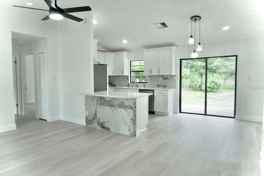 Stunning remodeled 3-bedroom, 2-bath home in a desirable Deltona location! This move-in ready residence has been meticulously updated and designed for both comfort and functionality. As you enter, you’ll love the open floor plan that creates a welcoming and tranquil ambiance. The kitchen and living area serve as the heart of the home, perfect for entertaining or gathering with family, and feature a large island, 42-inch cabinets, stainless steel appliances, granite countertops, a stunning backsplash, and a dining area. The primary suite offers a spacious walk-in closet and a beautifully remodeled bathroom, while the additional bedrooms share a modern full bath. Thoughtful upgrades throughout make this home truly shine with pride of ownership. Schedule your showing today—this one won’t last! Equal Housing Opportunity.