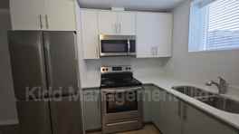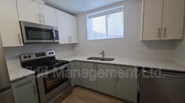Unit 105 offers a well-maintained 2-bedroom, 1-bathroom lower suite in the Monterey Meadows subdivision. The open-concept kitchen and living area features modern quartz countertops, full-size appliances, and a dishwasher. The suite also includes private in-unit laundry, providing added convenience and separation from other units.