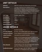Lovingly restored and updated upper 2-bedroom, 1-bathroom flat with an extra sun room in a historic Milwaukee bungalow, conveniently located in the charming Martin Drive neighborhood--available immediately. The house is a 10-minute drive to downtown Milwaukee, the Village of Wauwatosa, close to local stores, parks, etc., and is located along local bus routes. The unit has: - restored original hardwood floors and wood accents - original built-in sideboard in the dining room - multiple new high-efficiency window air conditioners - stainless steel appliances in the updated kitchen (fridge, dishwasher, microwave, range- oven/stove) - newly renovated bathroom with smart light/fan/speaker, mirror with dimmable multi-color light and an instant defogger - four total in-unit closets (three deeper walk-ins, one entryway) - additional storage on one half of the basement - dedicated washer and dryer provided for laundry in the basement Other features/services include: - updated plumbing and electrical infrastructure - ample street parking - lawn care/snow removal - keyless entry and digital doorbell - 24-hour full property surveillance - online tenant portal with lease, rent payment system, etc. Small to medium size cats and dogs are welcome with an added $25 monthly pet rent per pet (2 pets maximum). Please submit inquiries to the form on this page or contact Anyon Rettinger at 262-527-3893 or **** to schedule a showing, apply, or learn more.