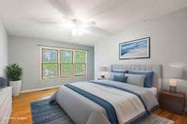 Inside, you’ll find hardwood flooring throughout the main living areas, a cozy fireplace, and an eat-in kitchen perfect for everyday meals or casual entertaining. The home features two primary suites—one on each level—both with walk-in showers, giving you flexible living arrangements and privacy. With ample closet space throughout, storage is never an issue.
