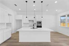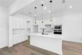 Chef’s Kitchen: Features a large island, 42 inch custom cabinetry, quartz countertops, butler’s pantry, and Energy Star Whirlpool stainless steel appliances including gas cooktop, built-in oven, and microwave.