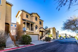 Beautiful home, WITH BED AND FULL BATH ON 1ST FLOOR; Luxury Vinyl Plank flooring throughout the home so easy care and great for those with allergies; 1st floor bedroom with light, closet, cable outlet, Quartz vanity top, and sliding door to backyard; Storage area under stairs; 2nd floor features kitchen with solid surface counters, pantry, and stainless appliances including the refrigerator and microwave; Dining area with door to balcony; Living room with light; 3rd floor features primary suite with light, cable outlet, walk in closet, double sink and tub/shower combo; 3rd bedroom with light, cable outlet, closet and full bath; Laundry room features washer and dryer; 2 car garage with auto door, and entry to the house; Cozy yard great for BBQing; Community park and guest parking; Convenient to the 15, M Hotel and Casino, South Point Hotel and Casino and the famous Las Vegas Strip, shopping and dining! Rent includes: Sewer, Trash and Resident Benefit Package