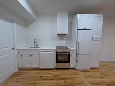 - Full chef's kitchen, white hardwood shaker cabinetry with open shelving design, quartz counters, and all-new, high-end appliances