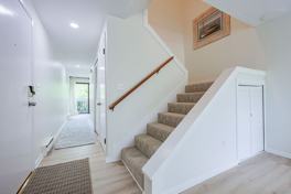 One dedicated parking space included. Guest parking available. There's an in-unit stacked washer dryer on the first floor.