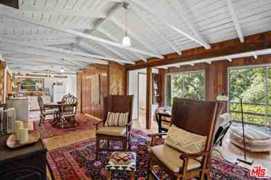Enchanted Oak Crest! Mimi and Henry Smith's legendary artist home on nearly 2 lush acres has been given new life by the new owners, and now the charm filled main house is ready to welcome new dreamers to take up the life of this mountainside homestead, surrounded by epic views to the west of the "7 Sisters" mountain peaks, including Strawberry Peak, which are protected parkland. The property backs up to parkland, as well, ensuring privacy. Henry and Mimi bought the property in 1960 from the original Homesteaders. They became stewards of this living work of art, building up and out as their needs changed over the years. Artists, musicians, actors, and writers dwelt, and played, on the Oak graced land. Units have been continuously rented since the 1960s, often by famous artists and musicians, all inspired by the pristine land. Up a romantic stone staircase the 2 bed, 1 bath 1934 main house perches with panoramic views of the cluster of peaks across the canyon. Sunlight floods the pine floors, beamed ceilings, and old cedar walls. A woodstove cozies up the rooms. Doors flung open welcome the soft breezes. The kitchen and bath have been updated and new minisplits bring a new level of comfort. Decks take in the views and the sounds of the nearby creek. Stone walls grace old stone patios. Fruit trees give their bounty, herbs and flowers scent the air. Plant tomatoes, and veggies. Or visit Topanga's lovely farmers market. This epic home rests close to the village, the coast, the valley. Here on the mountain, the sounds of music, laughter and birdsong await your passion for the true Topanga Life.