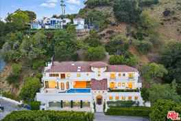 Set above the Chateau Marmont on a quiet cul-de-sac, this 6,687 square foot estate delivers scale, privacy, and unobstructed city views rarely found at this price. A dramatic two-story entry and sweeping staircase introduce the home, with an elevator connecting all three levels for seamless living. Twelve-foot ceilings, Euroline doors, and expansive glass frame panoramic vistas from nearly every room and open to multiple terraces and a mosaic-tiled pool and spa. The main level includes a large living room with terrace access, a formal dining area, and a chef's kitchen outfitted with Sub-Zero, Thermador, and Miele appliances. Upstairs, the primary suite offers 16-foot ceilings, a fireplace, steam shower, soaking tub, sauna, dual closets, and two private terraces positioned for sunrise and sunset views. Three additional en-suite bedrooms complete the floor. Additional features include a media room, office with its own terrace, interior laundry room, a tranquil garden with mature lemon trees, and a four-car garage with additional parking. Minutes from the Sunset Strip yet completely private, this home combines space, scale, and views in one of the most coveted pockets above West Hollywood. Flexible leasing terms.