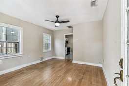 Street parking is available, and the unit comes with one assigned parking space in the driveway. Utilities are tenant’s responsibility: electric, internet, and 50 percent of the water bill. Trash is included.