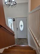 3 plus bedroom home in Poulsbo's Edgewater Estates. Split level floor plan. Upstairs features open living, dining and kitchen with sliding door to balcony with stairs that lead to fenced backyard. Two bedrooms. Primary bedroom with 2nd door to main floor bathroom.