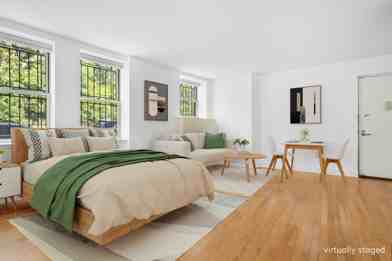 Welcome home to Parkside Flats, a boutique condominium nestled in prime Central West Harlem, directly across from the lush greenery of St. Nicholas Park and just one block from the ABCD express trains for easy commutes downtown or uptown or anywhere in NYC. This charming park-facing studio on the first floor offers a warm and flexible layout, featuring high ceilings, hardwood floors, and three large west-facing windows that fill the space with natural afternoon light. The open living area offers a generous footprint, easily adaptable for distinct living, dining, and sleeping zones. Two extra-large walk-in closets provide exceptional storage-one of which is large enough to serve as a comfortable home office or creative nook. The modern kitchen is thoughtfully designed with granite countertops, ample cabinetry, and a full suite of stainless steel appliances, including a dishwasher and in-unit LG washer & dryer. Parkside Flats is ideally situated near the vibrant 125th Street shopping corridor, with Trader Joe's, Whole Foods, and the iconic Apollo Theater just minutes away. Both Columbia University and City College are also within close proximity. Building amenities include a windowed fitness center, a beautifully landscaped courtyard, a brand-new virtual doorman system, and elevator access, all within a well-maintained, community-oriented building.