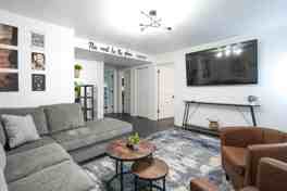 Modern 2 bed, 2 bath apartment near downtown Nashville, fully furnished and designed for comfort. Bedroom 1 features a king bed and an attached full bath. Bedroom 2 features twin bunk beds and a full bed, accompanied by a detached full bathroom located just outside the hallway. Enjoy a fully equipped kitchen, in-unit laundry facilities, a private entrance, and off-street parking. Centrally located near hospitals and major employers, ideal for mid-term stays.