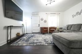 Modern 2 bed, 2 bath apartment near downtown Nashville, fully furnished and designed for comfort. Bedroom 1 features a king bed and an attached full bath. Bedroom 2 features twin bunk beds and a full bed, accompanied by a detached full bathroom located just outside the hallway. Enjoy a fully equipped kitchen, in-unit laundry facilities, a private entrance, and off-street parking. Centrally located near hospitals and major employers, ideal for mid-term stays.
