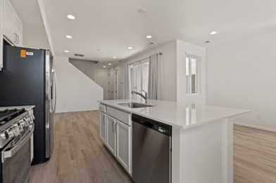 This gorgeous, one year old, 3bd/2ba townhouse comes with LVP and quartz countertops. It is an absolute dream with a pocket park right across the street. The natural light makes the home warm and inviting. There is an attached, 2-car garage and walk-in closets. It is located in the Kinston neighborhood right near Centerra, with easy access to shopping, groceries and retail. It is a great place to make your next home!