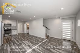 Modern and bright updated townhouse features four bedrooms, all with attached bathrooms. The entrance opens to the living room, dining area, and kitchen with laminate flooring and recessed lighting. The open kitchen includes a tile backsplash, white cabinets and drawers with brushed silver hardware, and stainless steel appliances. Kitchen appliances include a gas stove, single oven, microwave, dishwasher, and refrigerator. There is a half bathroom downstairs. One bedroom with an attached bathroom is located on the ground floor and features a sliding glass door leading to a private patio. Upstairs, there are three bedrooms, each with an en-suite bathroom and recessed lighting. A laundry closet with a stackable washer and dryer is in the hallway. This property offers a one-car garage and an assigned parking spot. Located between Melrose and Santa Monica Blvd, minutes from trendy Larchmont Village, action-packed Sunset and Vine, and numerous nearby studios and restaurants. Conveniently situated near the 101 freeway. *Owner may consider a small pet.