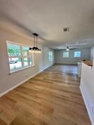 The fully renovated kitchen boasts modern appliances, sleek countertops, and ample cabinet space, making it ideal for both everyday meals and entertaining. The open living and dining areas are bright and inviting, offering the perfect layout for relaxing or hosting guests.