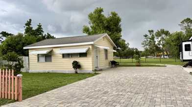 PENDING. Tucked away on a dead-end street, this cozy and inviting house just 20 minutes to the beach has everything you need. The kitchen is compact but functional, with modern appliances and new countertops. The two bedrooms both have good size, one with a queen bed and the other two twin beds. The bathroom is modern and pretty with all updated fixtures. The shared washer and dryer are right outside of the house in a small room. You'll share the lot, the washer and dryer with another couple who lives in an RV on the same lot. Besides the large lot with over 10,000 square feet, what is bonus is the vast, open park-like space behind the chicken fence. Stepping out from the back door, you're greeted by this peaceful lawn that looks like an extension of your own backyard. The house is in proximity to Walmart, Sam's Club, Publix, Starbuck and lots of restaurants. Owner provides all utilities including internet, it is truly a one -payment -for- all rental. Come check it out. Please call Hung at 781-816-1030 before submitting your application.