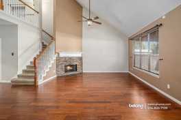 Graceful curb appeal invites you into this 5-bedroom home in Holland Estates, where soaring vaulted ceilings and generous windows fill the interiors with natural light. Neutral paint tones and open-concept flow make the living spaces feel both inviting and versatile. A stone fireplace anchors the main living area, paired with rich wood floors and French doors that add timeless character.