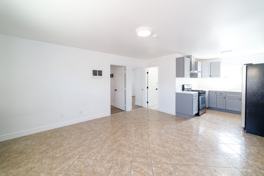 The kitchen features new gray shaker cabinets, quartz countertops, a farmhouse sink, and stainless appliances. The bathroom was fully redone with a walk-in shower and matte black fixtures. Tile floors in the living area keep things cool and low-maintenance. Both bedrooms get great light and come with large closets, because living light doesn’t mean living out of a suitcase.