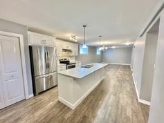 This spacious lower-level unit features large bedrooms, an open-concept layout with a breakfast bar, and stylish modern finishes throughout. Enjoy the convenience of in-suite laundry, private entrance, single-car garage, and driveway parking. Located in a sought-after West End subdivision close to public transit, with ample storage and comfort at every turn.