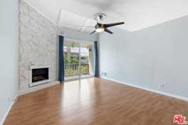 Beautifully updated top-floor 1-bedroom, 1-bathroom front facing unit at Del Rey Plaza. This spacious, light-filled home features wood floors and a generously sized living room with vaulted shiplap ceilings, a cozy fireplace, and sliding glass doors that open to a private balcony offering treetop views. The updated kitchen includes granite countertops, stainless steel appliances, ample cabinetry, a breakfast bar, and adjacent dining area with extra storage. The well sized bedroom offers high ceilings and ample closet space. Unit also comes with one parking space. Building amenities include a pool and community laundry on every floor. Conveniently located near shopping, schools, beaches, restaurants, bars, and a scenic bike path.