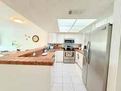 Experience the ultimate in coastal living with this beautifully updated top-floor waterfront condo, offering sweeping views of the serene cove and vibrant community below. Start your mornings with breathtaking sunrises and wind down to golden sunsets all from the comfort of your private lanai. Perched above it all, you'll enjoy daily shows from nature with dolphins and manatees often spotted right outside your windows. Inside, the home has been thoughtfully redesigned to maximize space and light. A wall has been removed to create a bright, open-concept layout that flows effortlessly between the kitchen and living area, anchored by a stylish bar ideal for entertaining or relaxing with a drink and a view. No detail has been overlooked. From the modern kitchen finishes to the chic flooring and updated fixtures, this home is completely move-in ready. Located in the vibrant heart of the community, you're just steps from a host of amenities including a heated swimming pool, shuffleboard courts, laundry room located on the third floor, and a spacious clubhouse with two fitness rooms, a ballroom, game and billiards rooms, a library, and a full calendar of social activities. This isn't just a condo its your front-row seat to the best in 55+ waterfront retirement living. Water, trash, cable, electricity and internet are all included in rent. Sorry, no pets. The owner accepts short-term 6-month rentals. Vacant and Available now!