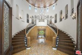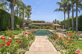 This extraordinary gated Mediterranean estate is a true sanctuary of elegance and scale. Encompassing over 31,000 square feet of impeccably manicured flat grounds, the property is enveloped by mature hedging that ensures complete privacy. Beyond the stately entrance, a dramatic two-story foyer reveals twin sweeping staircases and an array of refined living and entertaining spaces. Highlights include a formal dining room with custom wine storage, a gourmet chef's kitchen built for culinary excellence, and a state-of-the-art home theater. Every detail reflects exceptional craftsmanship and curated designer finishes. The main residence features seven bedrooms and nine bathrooms, including two guest suites conveniently located on the first floor. Upstairs, the primary suite is a luxurious private haven, offering dual spa-inspired bathrooms and expansive dressing rooms reminiscent of a couture atelier on Rodeo Drive. A detached one-bedroom, one-bathroom guest house provides flexible accommodations for guests or staff. The grounds offer a peaceful escape, with a tranquil fountain, vibrant rose gardens, multiple loggia-covered seating areas, an outdoor fireplace, and an elegant alfresco dining pavilion designed for unforgettable gatherings beneath the California sky. With parking for eight vehicles, exceptional privacy, and close proximity to Beverly Hills' top-rated schools, civic amenities, and world-class shopping and dining, this is one of the city's most distinguished luxury lease offerings.