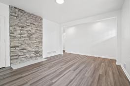 Incredible renovation! 2 bedroom, 1 bathroom bottom half of a duplex with a front and rear porch. Enjoy a newer kitchen, bathroom, floors, windows and appliances! Decorative stone focal point in family room. Large rooms sizes with ample natural light. Nice backyard for relaxing or entertaining. Forced air gas heat and central air conditioning. The shared basement has a washer and dryer specific to this unit that can be rented for $70/month. This is an apartment you do not want to miss out on!