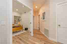 The main level features a versatile bedroom/office with an adjacent full bath, a laundry room, and an updated kitchen with generous cabinet space and a cozy breakfast nook. The kitchen flows seamlessly into the family room with a dual-sided fireplace, and continues into the living and dining area, highlighted by a wall of windows showcasing serene greenbelt views.