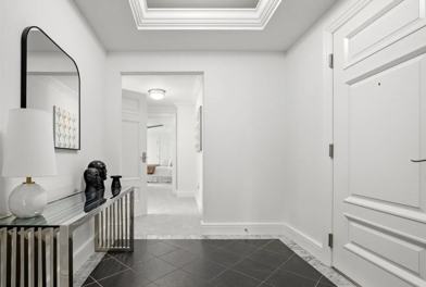 Each bedroom comes with its own spa-like ensuite bathroom and ample closet space. The primary suite boasts a large walk-in closet with custom shelving and a luxurious heated towel rack in the ensuite bath. Additional conveniences include an in-unit laundry room, extra hallway storage, and a private garage with two spacious parking spots right next to the elevator.