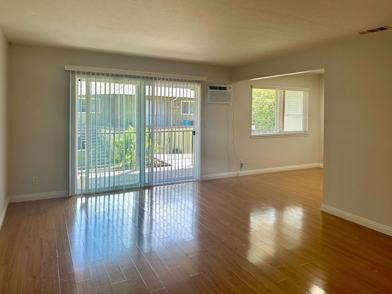 Come see this spacious 2-bedroom, 1-bath upstairs apartment unit featuring a beautifully remodeled kitchen with stainless steel appliances, including a glass top electric range with a single oven, refrigerator, dishwasher, and exhaust hood, quartz countertops, and white shaker cabinets. Other features include a freshly painted interior, laminate flooring throughout, an updated spacious bathroom, dual-pane windows, forced air heating, faux wood blinds throughout, a sliding glass door that opens up to a private balcony, and a detached garage with assigned parking. There is a separate laundry room on-site with a washer and dryer available (will need to download a payment app to use the machines).