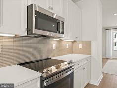 Discover the pinnacle of modern living in this 2024-built, never-lived-in townhome in the prestigious Wellington Farms community. Every detail has been thoughtfully designed to combine style, function, and comfort across three levels of exceptional living space. Step into the main level and immediately notice the open-concept layout that effortlessly connects the living and dining rooms with the chef-inspired kitchen at the heart of the home. Sunlight pours through a wall of living room windows, while the dining area's sliding glass door opens to a large deck overlooking lush green community space, creating an inviting setting for entertaining or relaxing. The kitchen is a showpiece, boasting soft-close white cabinetry, sparkling quartz countertops, a tile backsplash, a spacious island with breakfast bar, and stainless steel appliances. Two pantries, including a generous walk-in, offer abundant storage for every culinary need. Upstairs, the primary suite is a luxurious retreat, featuring a tray ceiling, two walk-in closets, and a spa-like en-suite bath with a double sink vanity, tiled shower with dual shower heads, and private water closet. Two additional bedrooms share a full bath with a second double sink vanity, while the upper-level laundry room with cabinetry makes daily routines effortless. The entry-level family room provides flexible space for gatherings or work-from-home setups, includes a convenient half bath, and opens to both the backyard and the two-car garage. The garage is equipped with an electric car charger, offering modern convenience and energy efficiency for today's lifestyle. Wellington Farms offers a vibrant community lifestyle with a center featuring an exercise room, kitchen, gathering room, pool, playground, and patio with a fire pit. Ideally located in Laurel, MD, you are just minutes from parks, trails, playgrounds, shopping, dining, and local attractions. Top-rated Howard County schools and easy commuting via major routes and the MARC train make this location ideal. This is more than a home. It is a pristine, move-in-ready space where modern luxury, thoughtful design, and a dynamic community converge.