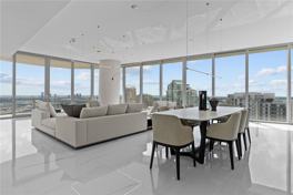 5-bedroom, 5.5-bath residence spanning in total 3,990 sq. ft. This corner unit features private foyer entry, Thassos marble floors, wraparound terrace, and floor-to-ceiling glass with panoramic views of the ocean, bay, and Miami skyline. Enjoy a chef’s kitchen with Gaggenau appliances, center island, and breakfast area, plus a grand living and dining space perfect for entertaining. The primary suite offers a sitting area, Poliform custom walk-in closet, and dual spa-style bathrooms with soaking tub, rain shower, and water views.