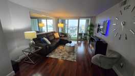Amazing sunsets from the balcony of my furnished and modern 1 bedroom apartment. Two walk-in closets within 5 total, wood floors, hurricane windows with electric curtain, updated kitchen and bathroom, new sofa with 2 electric recliners, 1 parking space, electric fireplace, new laundry machines on each floor. Located on 14th floor in a full-service building with pool on the bay & a new gym. Internet, Direct tv, and water included. 2 person max occupancy. All pictures are recent and unedited, even those of skyline from balcony.